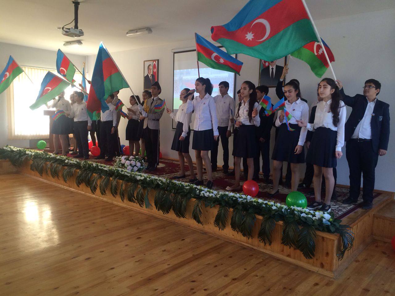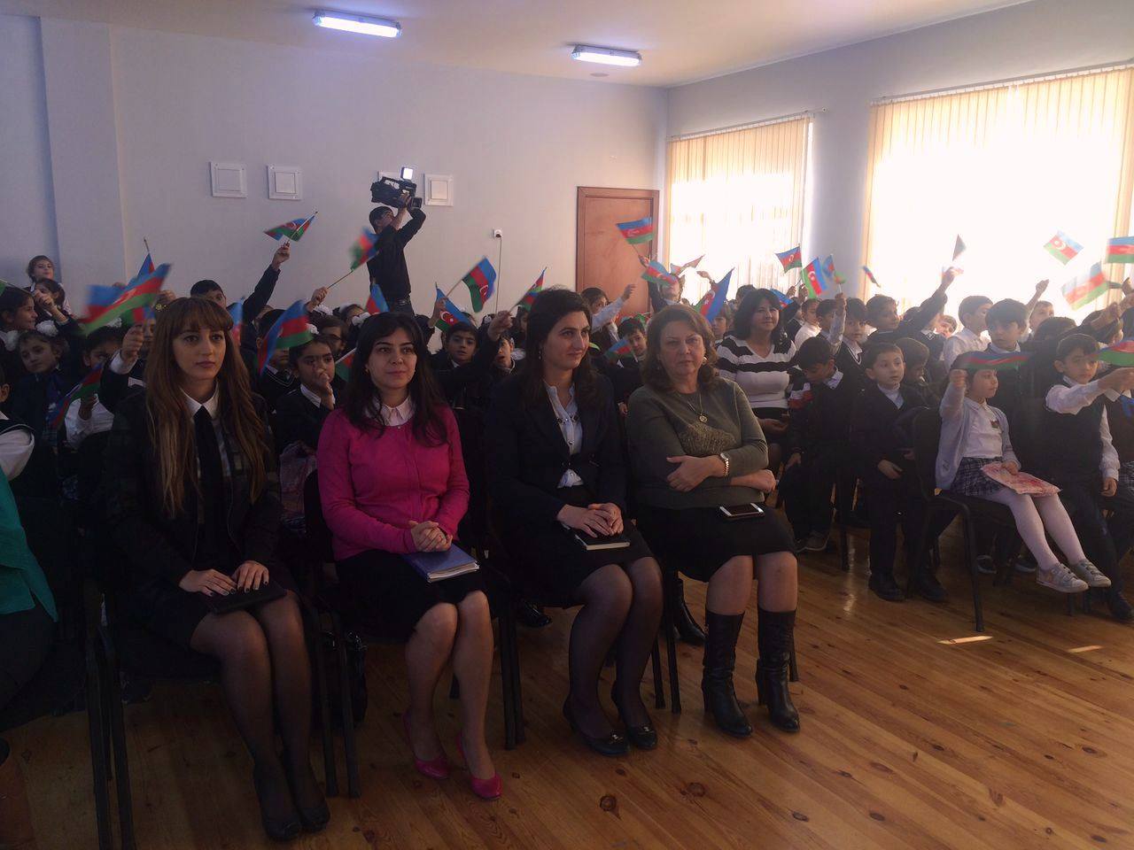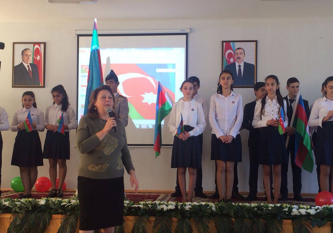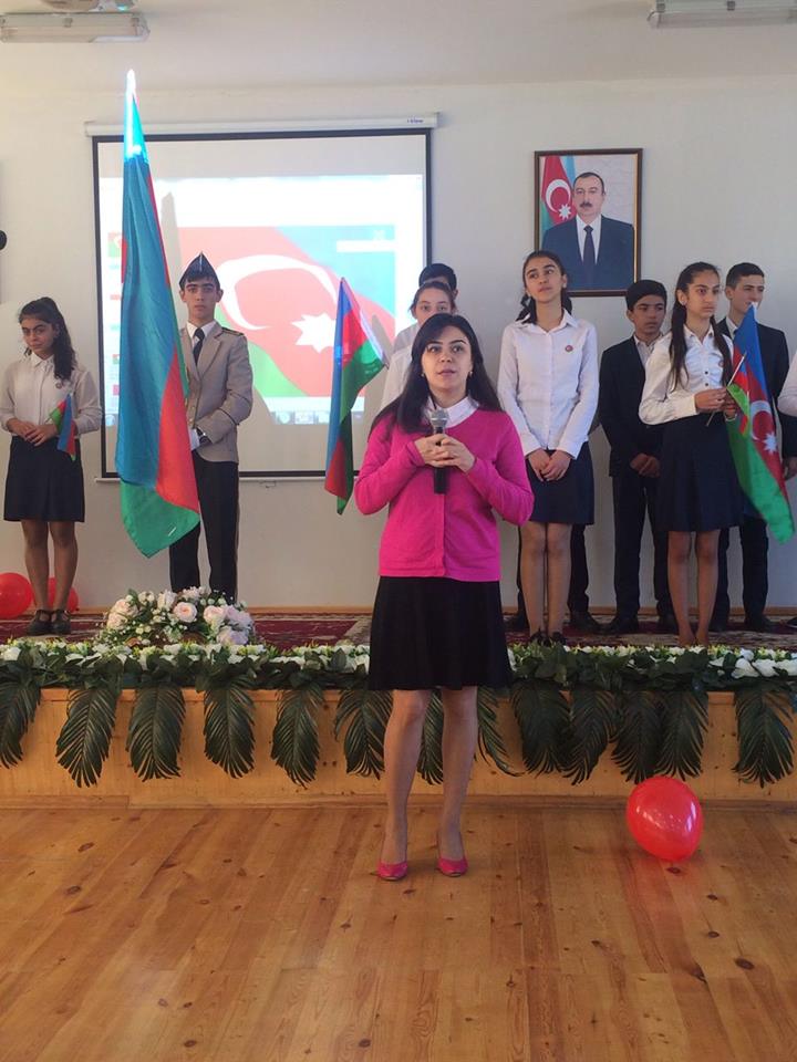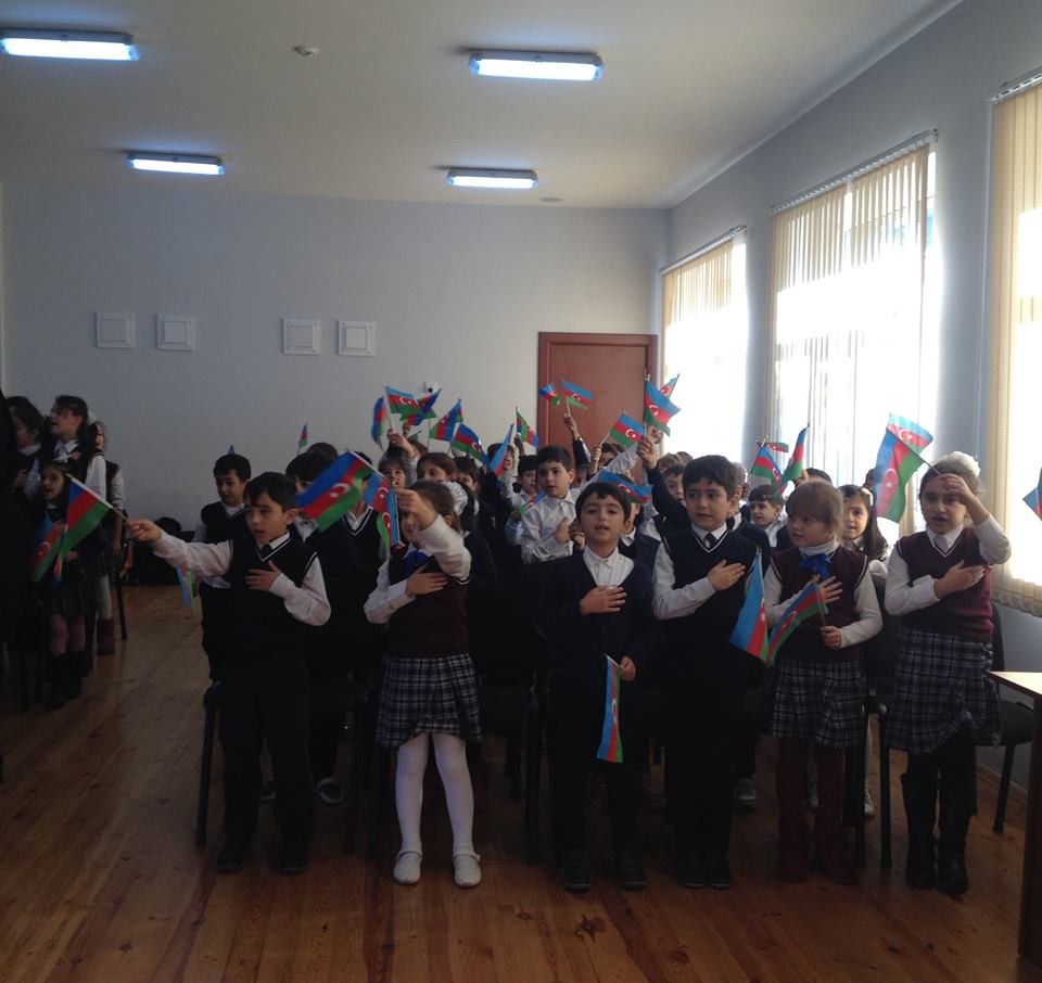 Məktəbin 9-cu sinif şagirdlərinin iştirakı ilə “Öyrənək və Öyrədək” layihəsi çərçivəsində ibtidai sinif şagirdlərinə dövlət rəmzlərindən olan bayrağımız haqqında ətraflı məlumat verildi, şagirdlərin bilik və bacarıqlarını nümayiş etdirmək üçün viktorina təşkil olundu, sualları cavabalandıran şagirdlər mükafatlandırıldı, şagirdlərin ifasında müxtəlif şeir və musiqi parçaları səsləndi, eyni zamanda ibtidai sinif şagirdlərinin ifasında “Bayraq” kompozisiyası təqdim olundu.