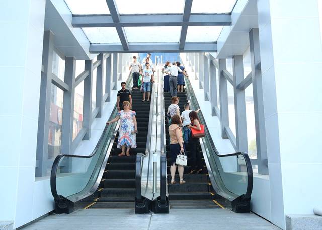 Bir aşırımlı, metal konstruksiyalı yerüstü müasir piyada keçidinin eskalatorlarla birlikdə ümumi uzunluğu 82,12 metr, o cümlədən giriş-cıxışlarda pilləkanların üzunluğu 2×23.77=47.54 metr, aşırımın mərkəzi dayaq oxları arasında məsafə 28.24 metr, daxili eni 3,4 metr, hündürlüyü isə 3,0 metrdir, yol üzərindən hündürlüyü isə 6,0 metrdir. Yerüstü piyada keçidinin eyni tərəfə baxan iki ədəd giriş cıxışının hər birində vətəndaşların rahat hərəkəti üçün 2 komplekt olmaqla 4 ədəd eskalator quraşdırılıb.